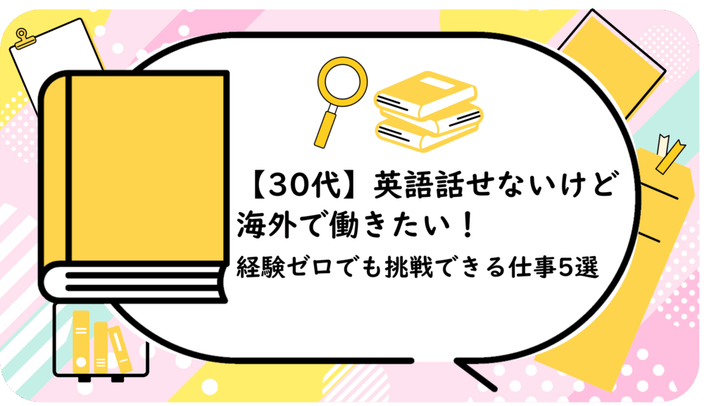 30代で海外に挑戦する場合、これまでの経験を活かせる仕事や、未経験からでも始めやすい仕事を選ぶのがポイントです。英語力ゼロからでも挑戦できる5つの仕事をご紹介します。