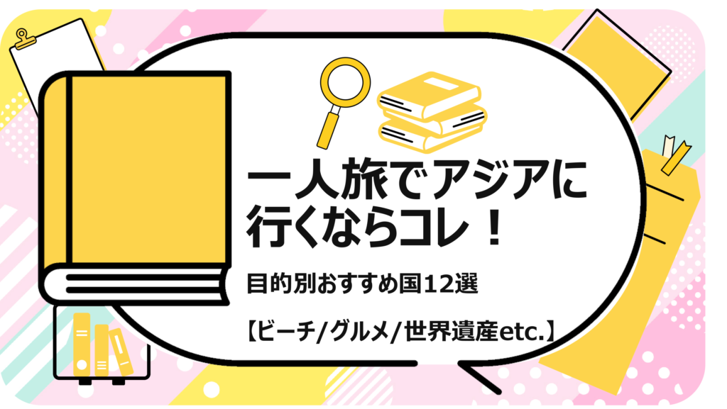一人旅でアジアに行くならコレ!目的別おすすめ国12選【ビーチ/グルメ/世界遺産etc.】